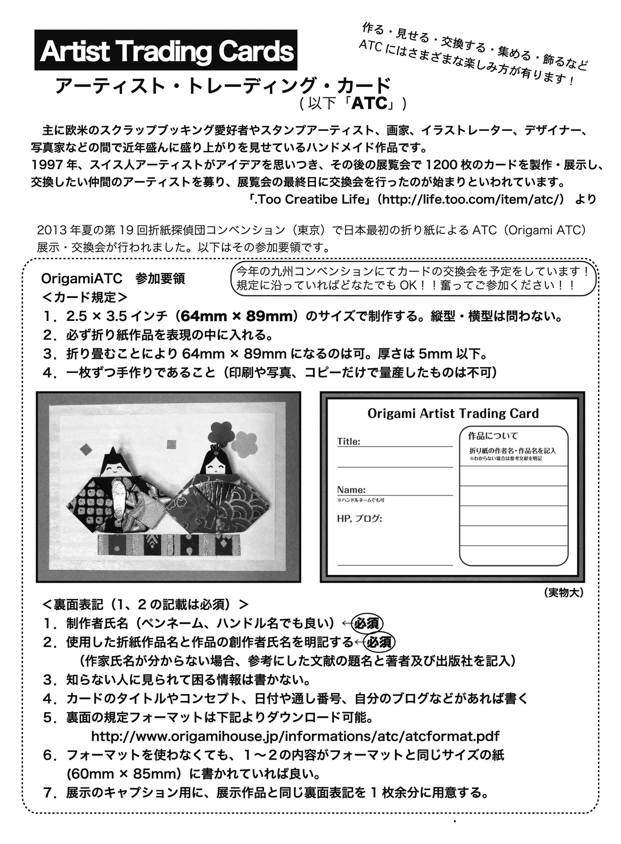 Show & Tell of Origami ATC: Convention participants are free to visit.